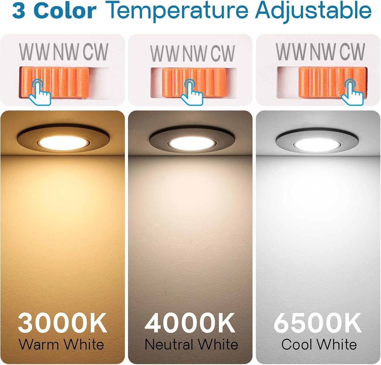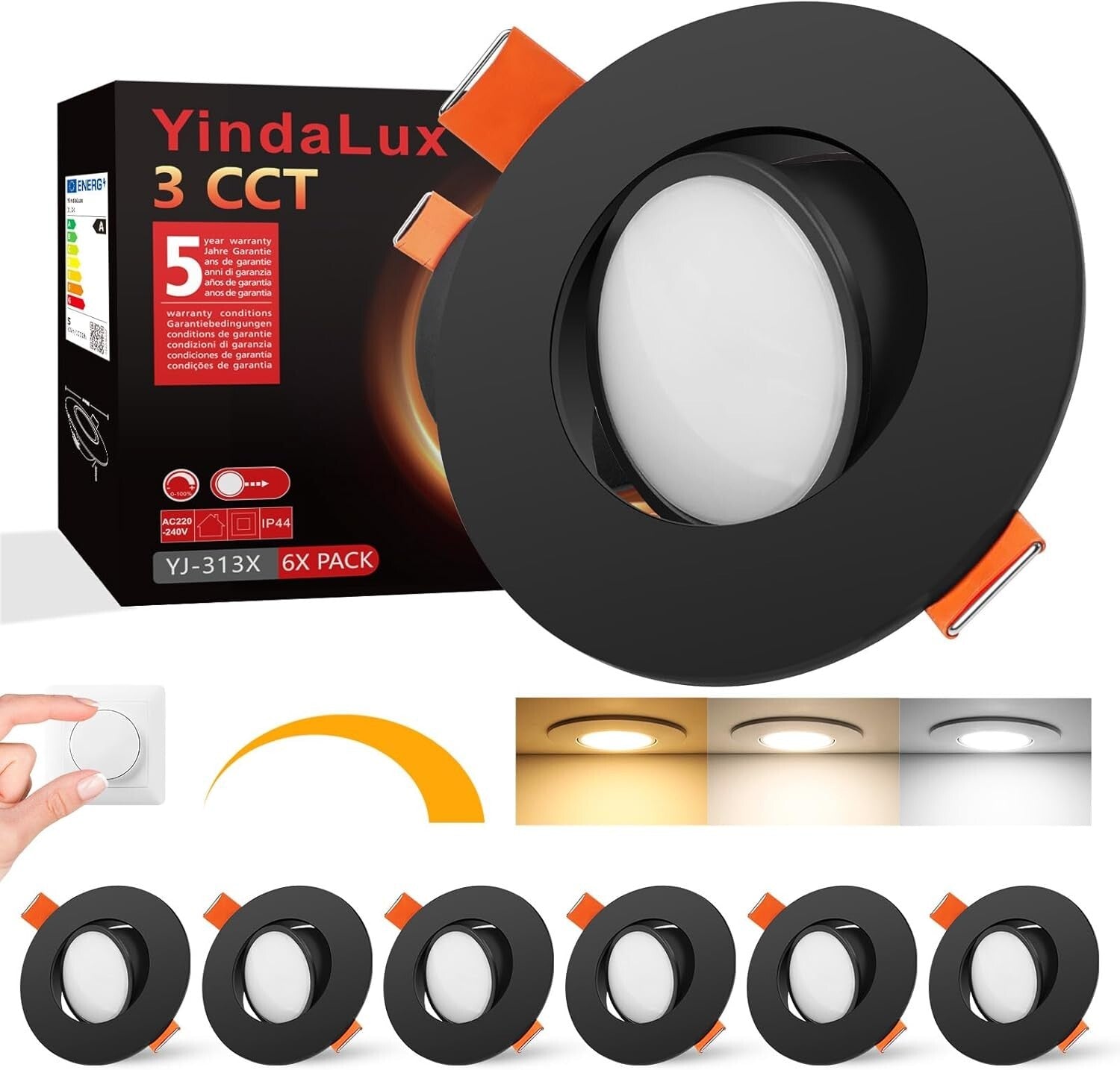 • 【CCT-3 Farbtemperaturen zur Auswahl 】Die Einbaustrahler led übernehmen das neue Design von 3CCT. LED Einbaustrahler 230V können auf Warmweiß (3000K) oder Neutralweiß (4000K) oder Kaltweiß (6500K) eingestellt werden, Die Lichtfarbe lässt sich durch einfaches Anklicken des orangefarbenen Kippschalters auf der Rückseite der Leuchte einstellen; Sie können die richtige Farbtemperatur für unterschiedliche Bedürfnisse und Szenarien wählen.