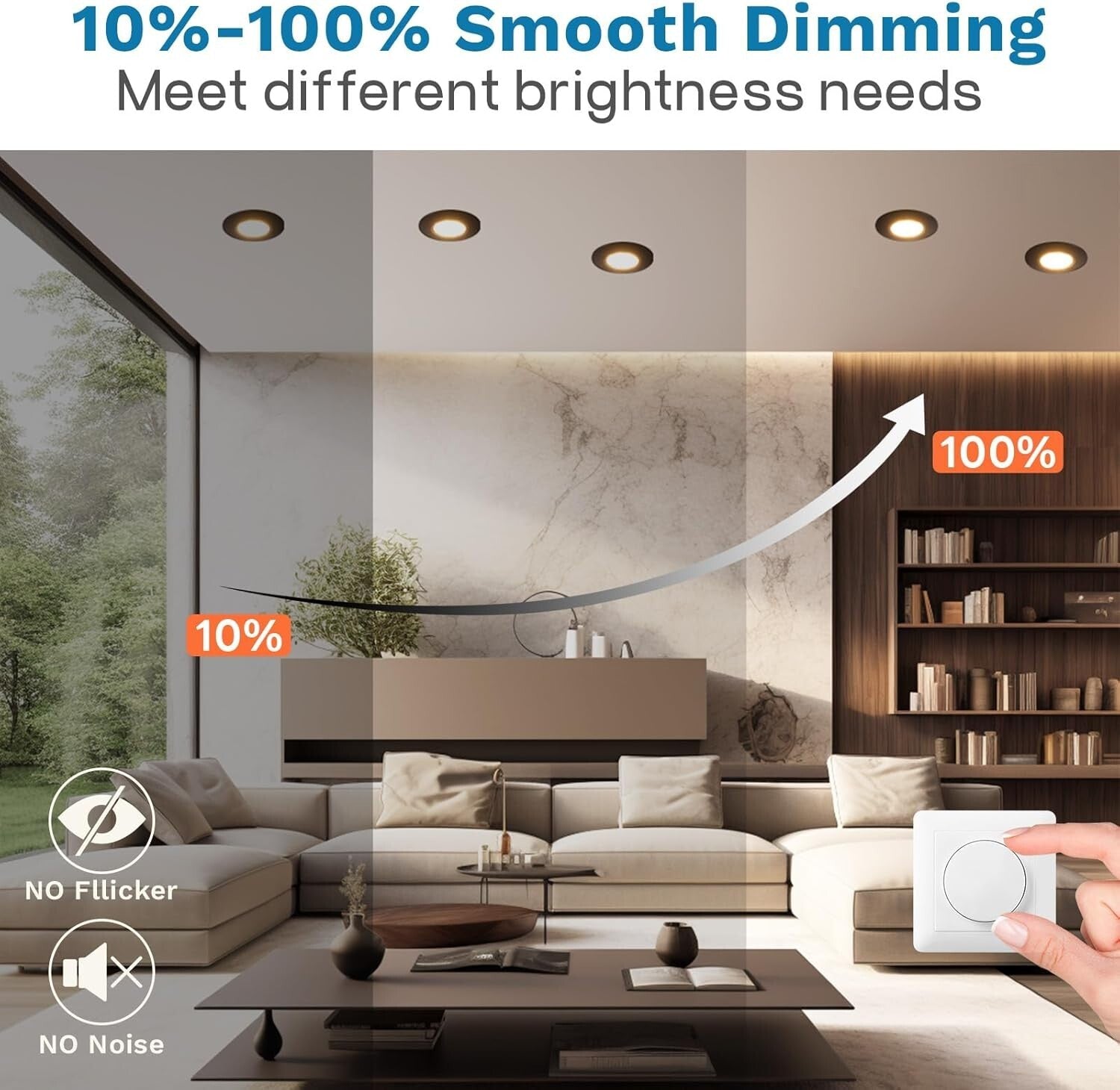• 【Dimmbar】LED Spots 230V können eine sanfte Dimmung mit einem Dimmbereich von 10 % bis 100 % erreichen, um Ihren unterschiedlichen Helligkeitsanforderungen gerecht zu werden. LED Einbauleuchten haben einen breiten Abstrahlwinkel von 120°, wodurch ein größerer Bereich beleuchtet werden kann. Kein Flackern und kein Lärm, wodurch eine angenehme Lichtatmosphäre für Sie entsteht; kompatibel mit Phasenabschnittdimmern. Unsere Downlights können auch ohne Dimmer mit voller Leistung betrieben werden.