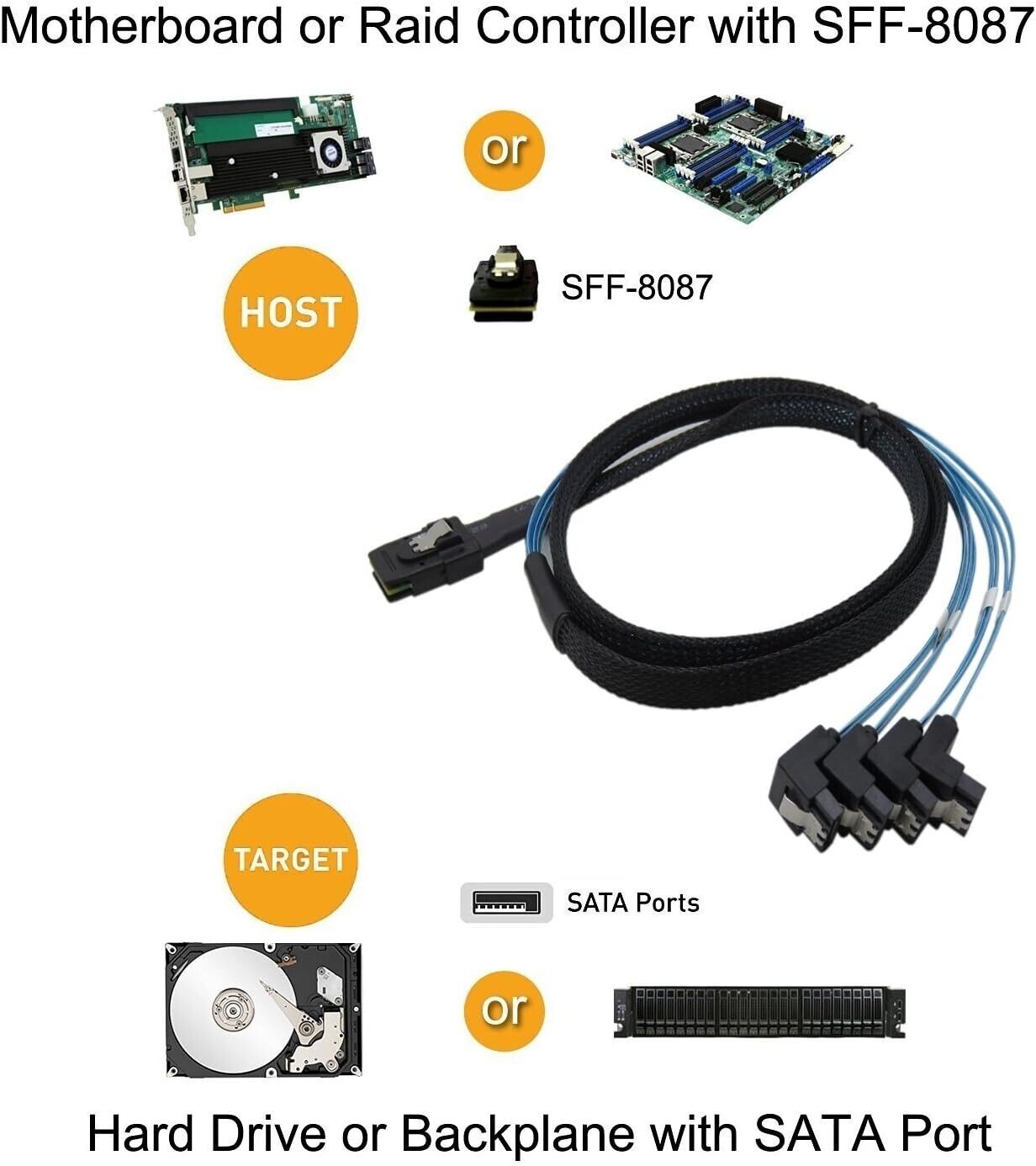 Yiwentec Mini SAS 36P SFF-8087 auf 4 SATA 7-Pin 90 Grad Target Festplatten-Da