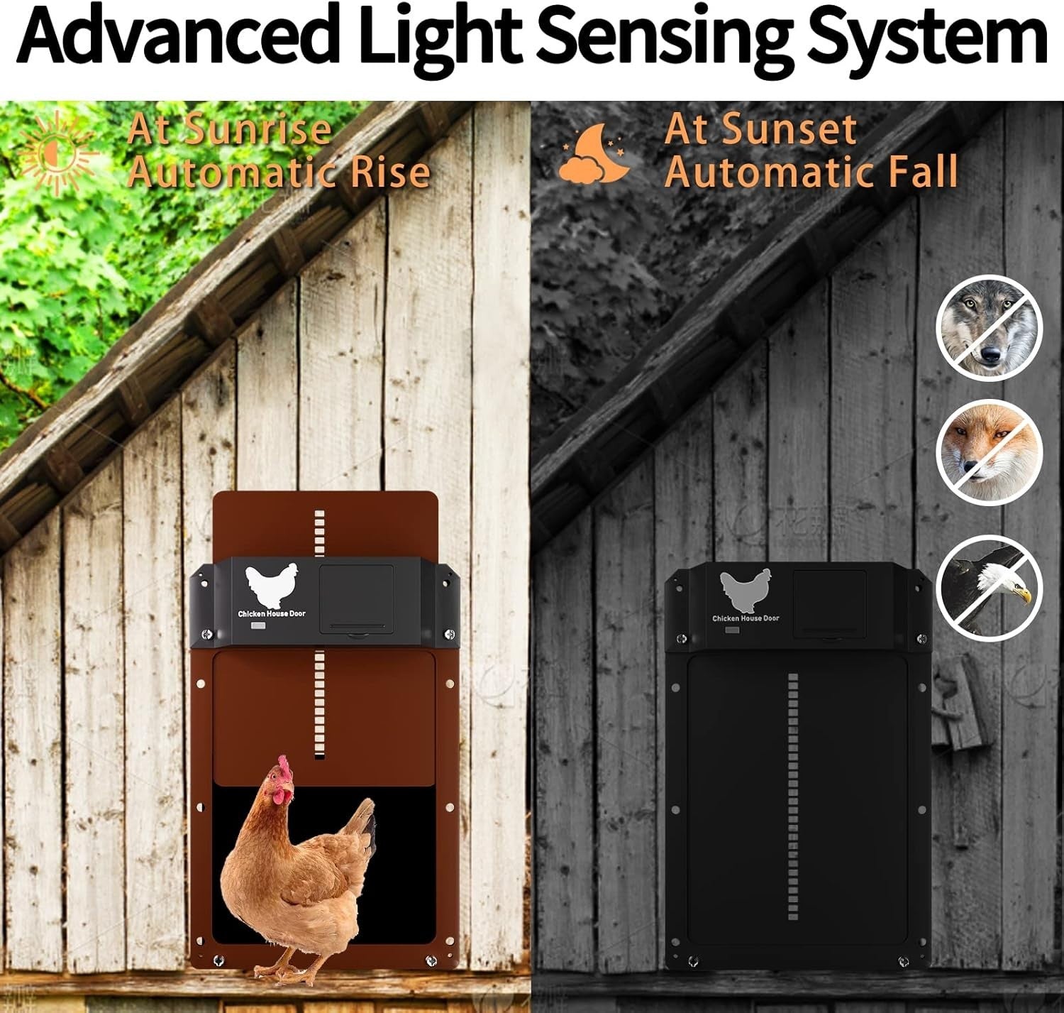 Yoarmyt 2.0 Automatische Hühnerklappe Türöffner,Türöffner Hühnerstall, Automatisch Hühnertür Mit Lichtsensor,Inklusive Schieber Mit Führungsschienen,Sichere Hühneraufzucht