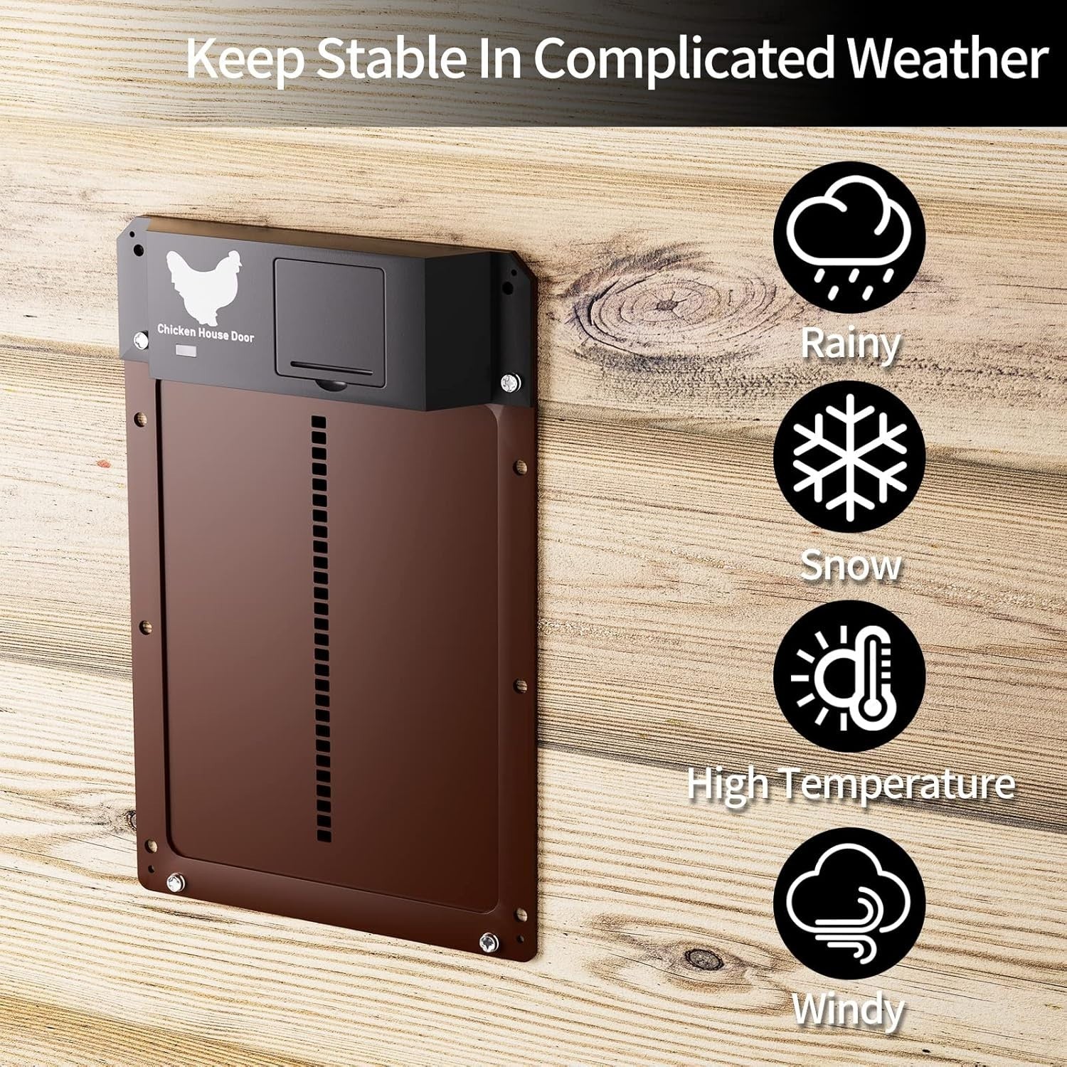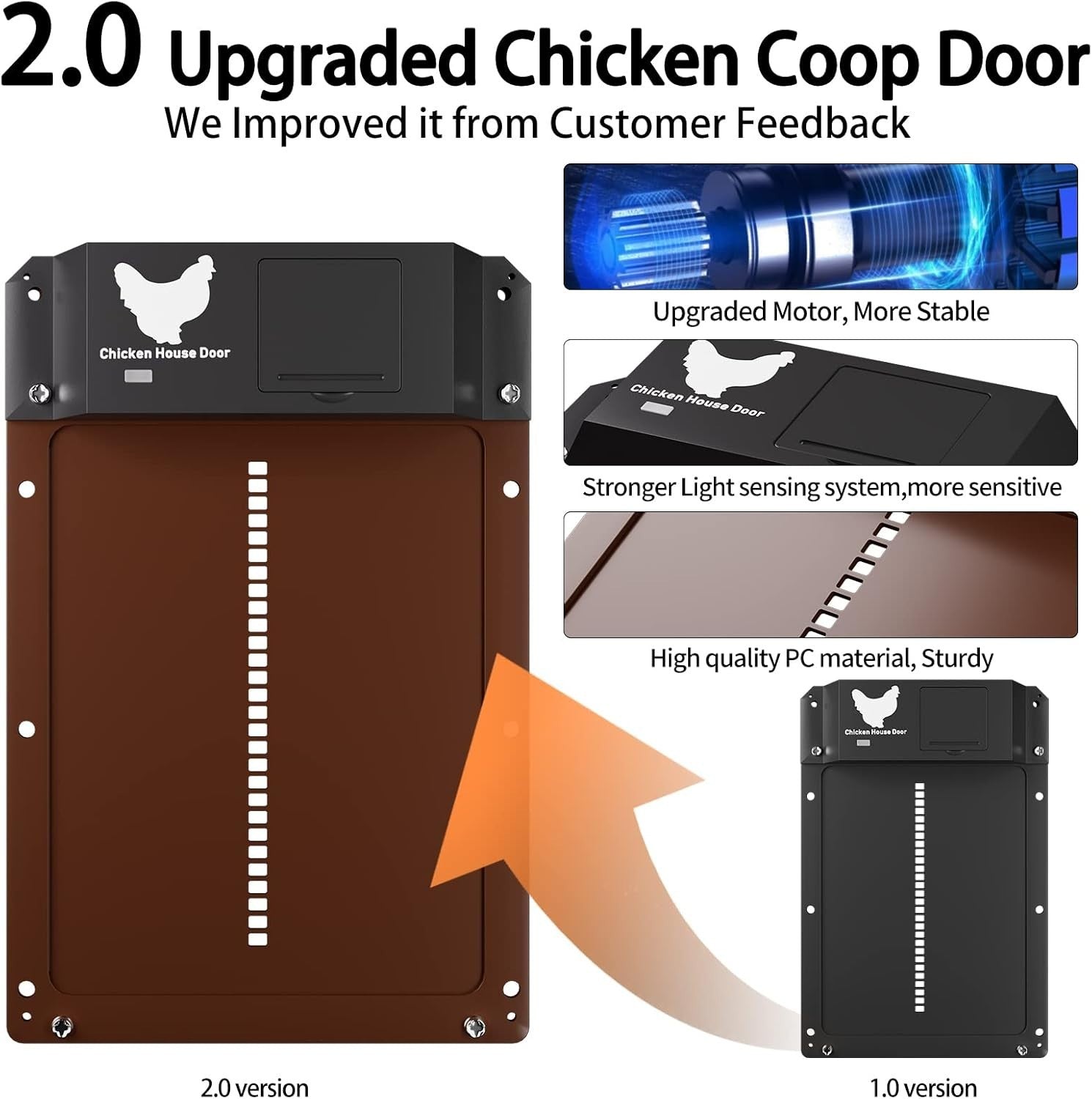 - 【Automatische Hühnerhaustür Version 2.0】Wir haben Kundenfeedback auf dem Markt Verbesserung: Aktualisieren Sie das eingebaute Motorsystem, um die Leistung stabiler und zuverlässiger zu machen; Der verbesserte optische Sensor hat eine höhere Empfindlichkeit; Mit fortschrittlicheren PC-Materialien ist es langlebiger! Gleichzeitig kann es bei Stürmen und hohen Temperaturen normal arbeiten.