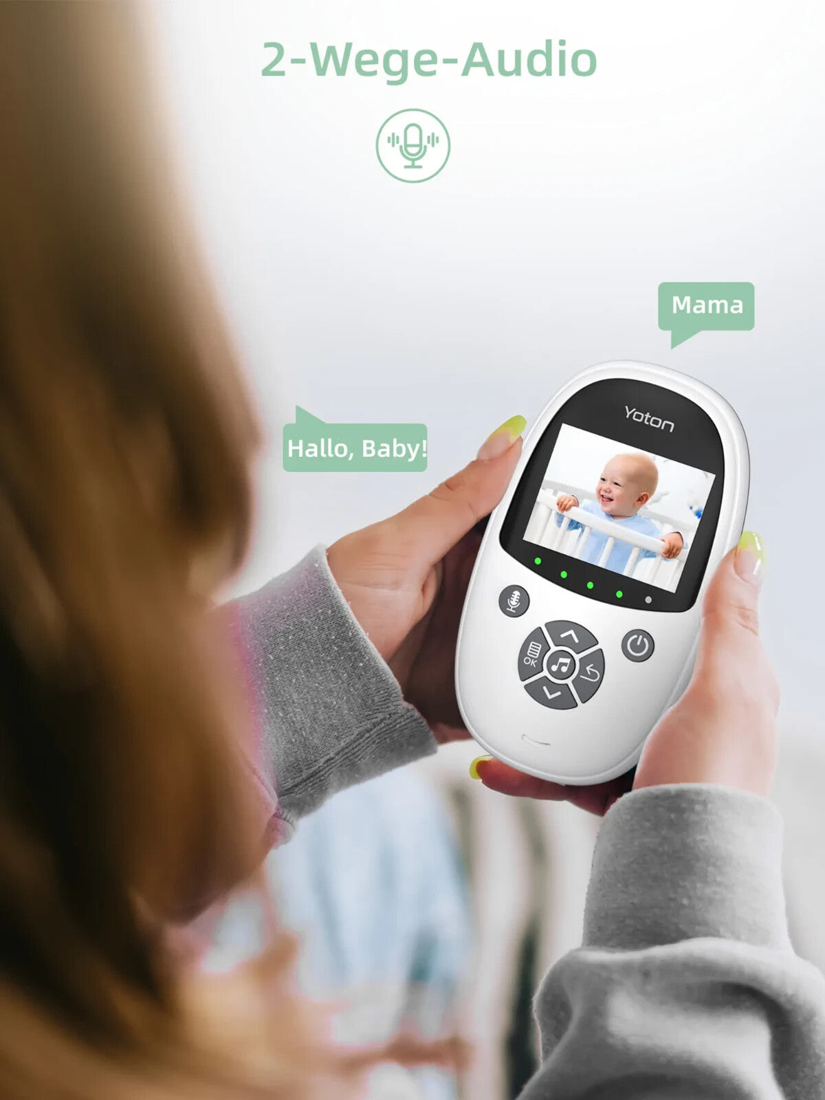 Die YOTON YB01 Babyphone mit Kamera verfügt über einen großen 2,4 Zoll Bildschirm und eine Zwei-Wege-Kommunikation, die eine ununterbrochene Überwachung mit klarem Ton und HD-Video ermöglicht. So können Sie Ihr Baby von überall im Haus sehen und hören.