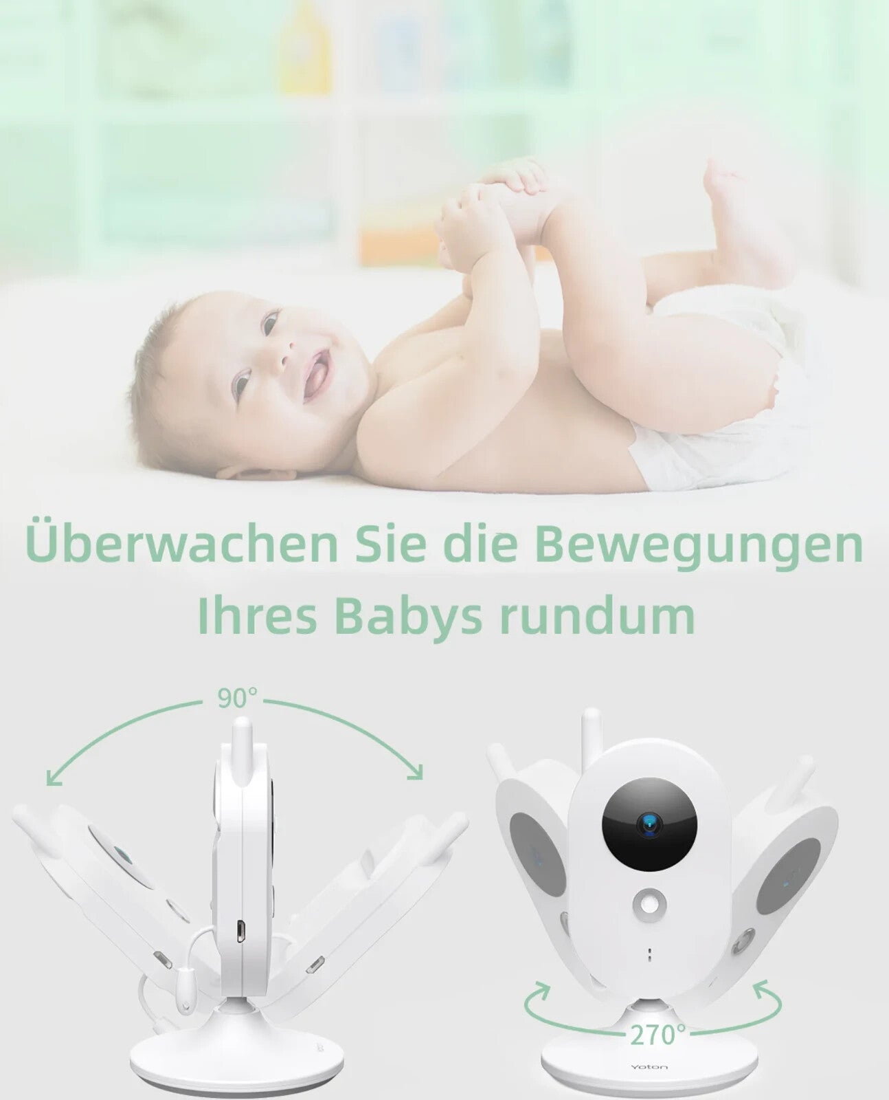 Die YOTON YB01 Babyphone mit Kamera verfügt über einen großen 2,4 Zoll Bildschirm und eine Zwei-Wege-Kommunikation, die eine ununterbrochene Überwachung mit klarem Ton und HD-Video ermöglicht. So können Sie Ihr Baby von überall im Haus sehen und hören.