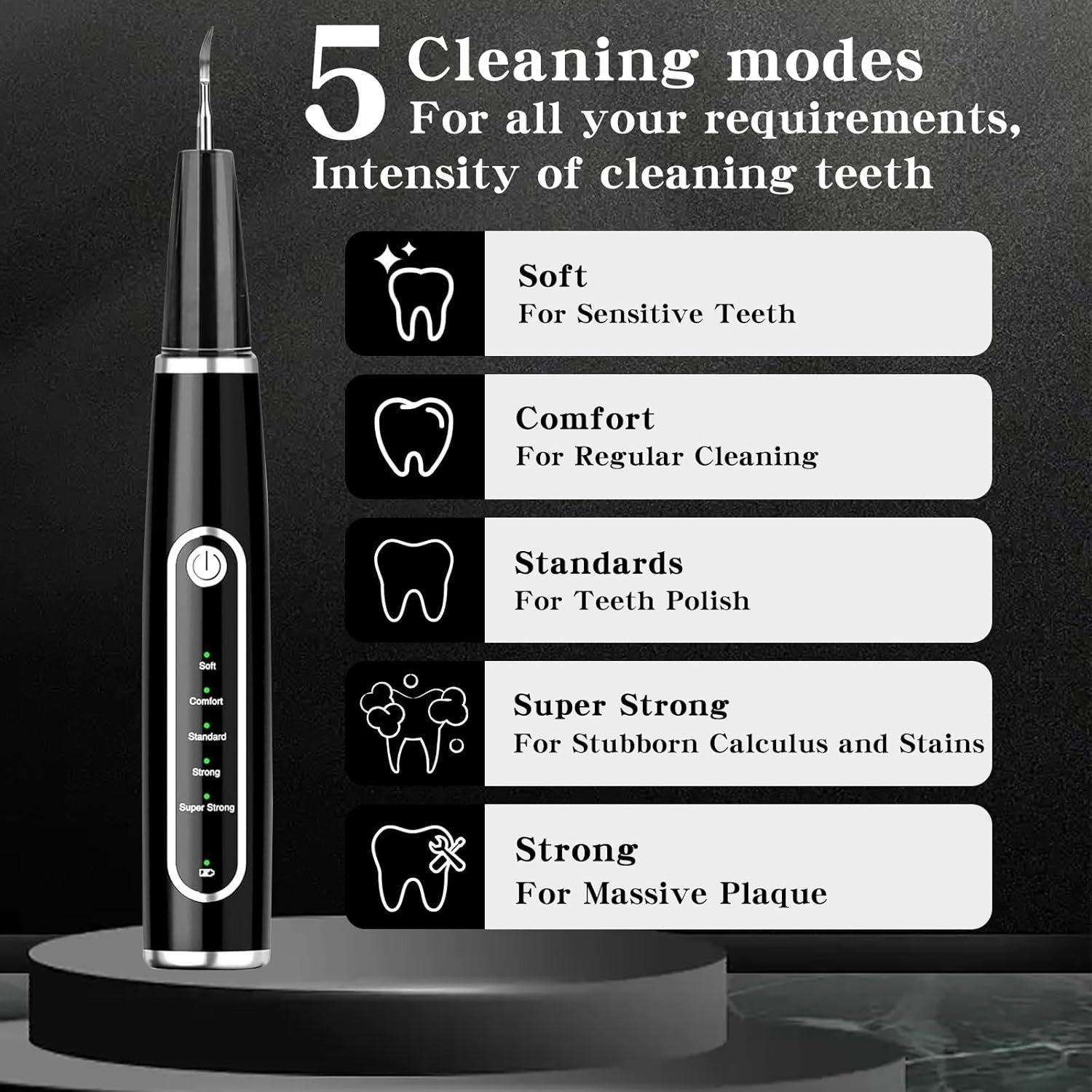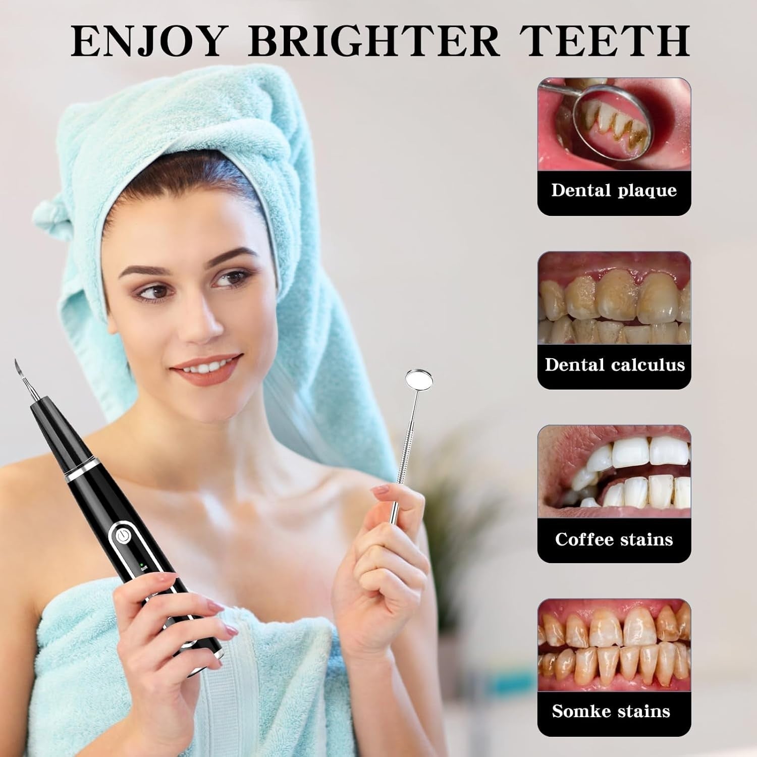 • Elektrischer Zahnsteinentferner: Dieser Zahnsteinentferner für Erwachsene kombiniert fortschrittliche Technologie mit einem benutzerfreundlichen Design. Unser professionelles Zahnreinigungsset ist ideal für die Zahnreinigung zu Hause und bietet eine gründliche Reinigung, die normalerweise nur beim Zahnarzt möglich ist.