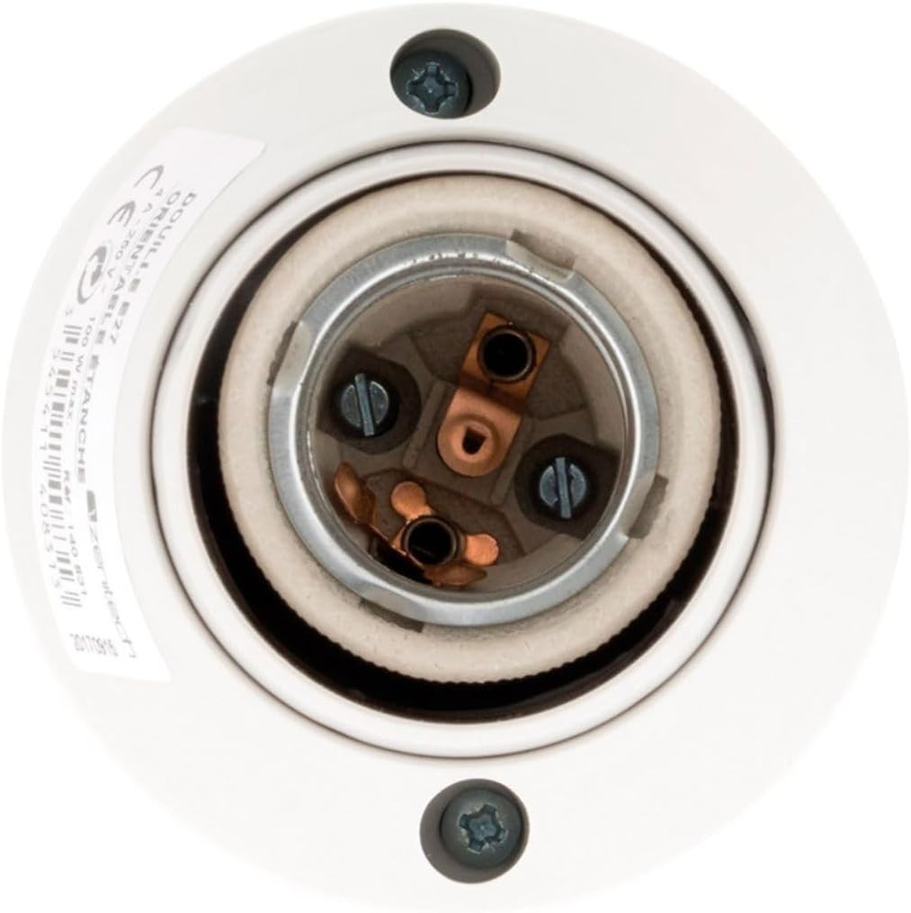 Zenitech - Wasserdichte Schwenkbare Fassung – Sockel E27 – Max. Spannung 250 V – Max. Stromstärke 4 A – Max. Leistung 100 W – Passende Beleuchtung, Winkelverstellbar – CE-Konform – Weiß